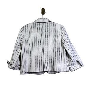 TALBOTS Blazer 16 Piped Textured Jacket Cream W/Black Dash Line Pattern 3 Button