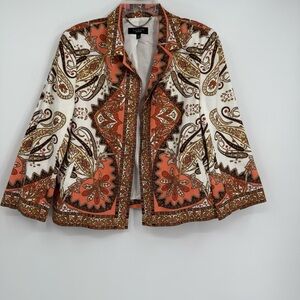 TALBOTS Blazer Size 14 Cotton Jacket Paisley Lightweight Collar Pockets Lined. Open front. Peach white.