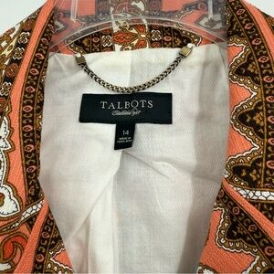 TALBOTS Blazer Size 14 Cotton Jacket Paisley Lightweight Collar Pockets Lined