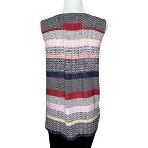 Multicolor small striped geometric print sleeveless office blouse by TALBOTS
