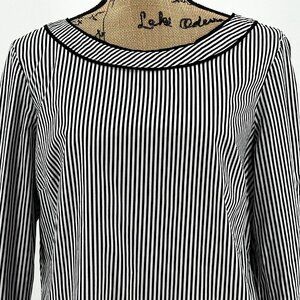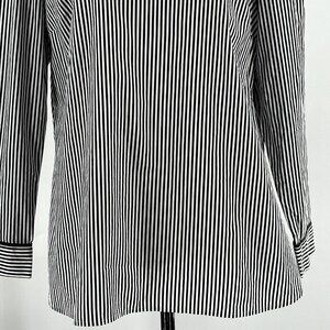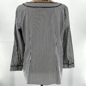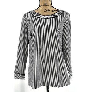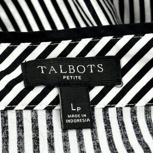 TALBOTS Blouse Womens Petite Large Black White Striped Long Sleeve Side Zip Top