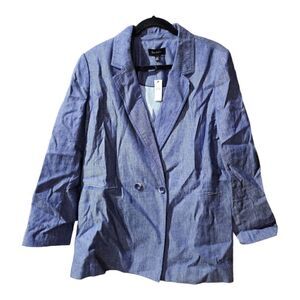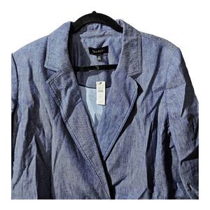 TALBOTS Blue Chambray Linen Cotton Double Breasted Jacket NWT - Size 16