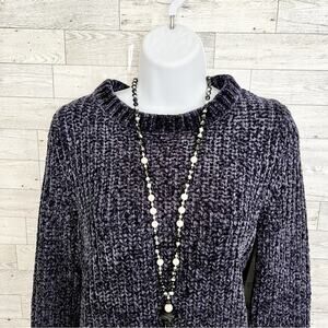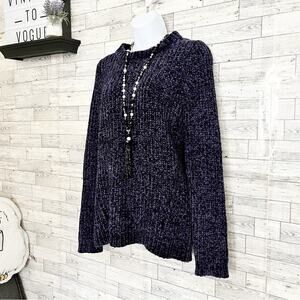 Wrap yourself in comfort with this chenille knit pullover by TALBOTS. Its navy blue color with hints of gray makes for a stylish addition to any wardrobe. This crewneck sweater features long sleeves and is made of 100% polyester for that extra softness. Perfect for both office settings and casual occasions. Hand wash cold.