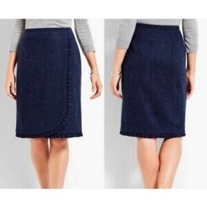 TALBOTS Blue Donegal Tweed Shetland Ruffle Wrap Skirt sz 12