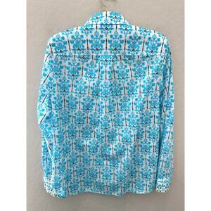 Brighten up your wardrobe with this crisp and cheerful button-down shirt by Talbots! Featuring a vibrant turquoise floral block print on a white background, this lightweight top is perfect for layering or wearing solo for an effortlessly polished look. Made from breathable 100% cotton for all-day comfort.