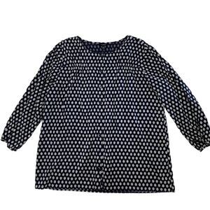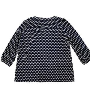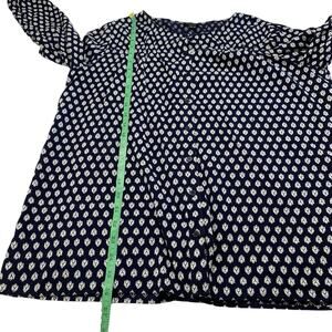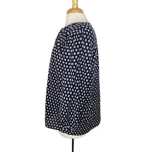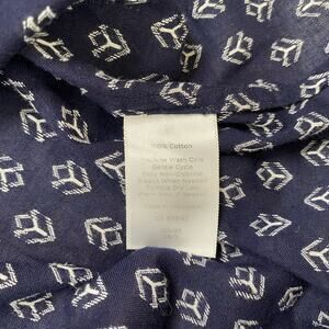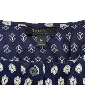 TALBOTS Blue White Geometric Embroidered Woven Cotton Button Up Blouse Medium