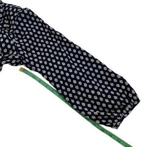 TALBOTS Blue & White Geometric Embroidered Woven Cotton Button Up Blouse. Size Medium Womens. Collarless style with slightly puffed sleeves gives an easy boho feel to this lightweight top. Great for work or casual. 100% cotton. Excellent condition -- no rips, stains, or holes.