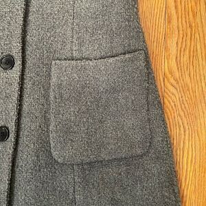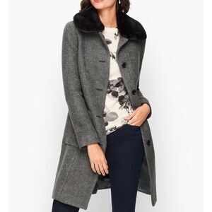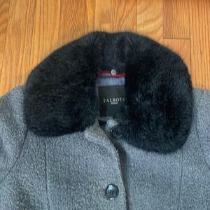 TALBOTS Boucle Wool Blend Coat Grey Faux Fur size Small Petite