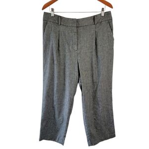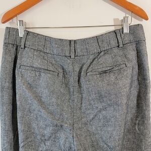 TALBOTS Bristol Pant Women Sz 14 Gray Linen Blend Pleat Front Cropped Minimalist