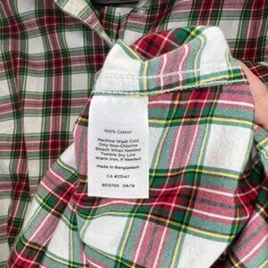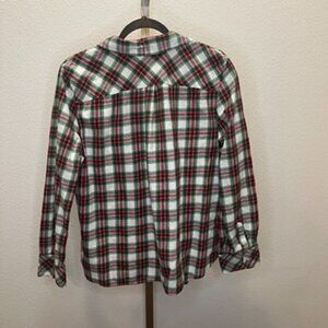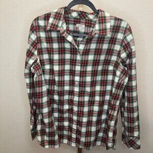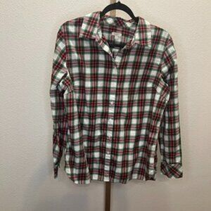 TALBOTS Button Down Shirt White Red Green Plaid Size LP Petite