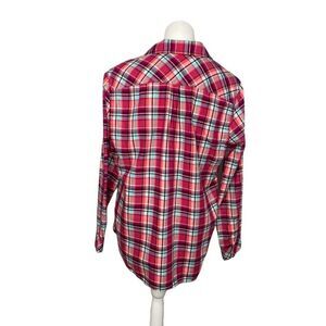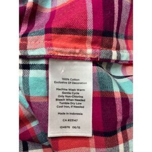 TALBOTS Button Down Pink Aqua Plaid Long Sleeve Cotton Top Large