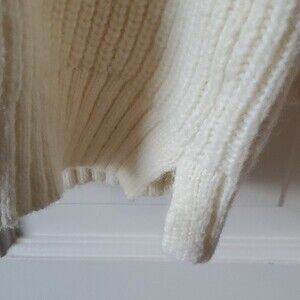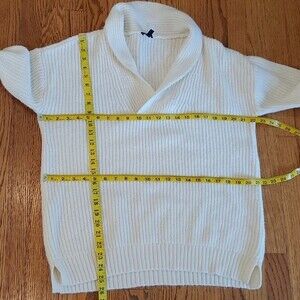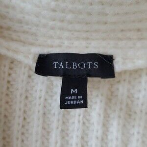 TALBOTS CHUNKY KNIT WOOL BLEND SWEATER CREAM V-NECK SHAWL TUNIC SIZE MEDIUM