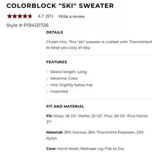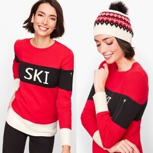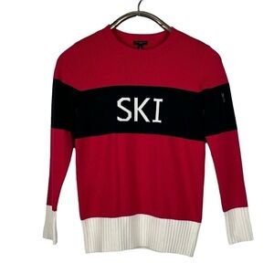 TALBOTS COLORBLOCK RIBBED APRES SKI CREW NECK HOLIDAY WINTER RED CHALET SWEATER