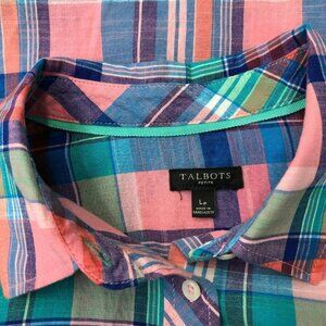 TALBOTS COTTON BUTTON UP LONG SLEEVE TOP PET LG