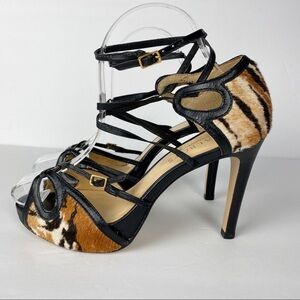 TALBOTS Calf Hair Peep Toe Ankle Strap Stilettos
