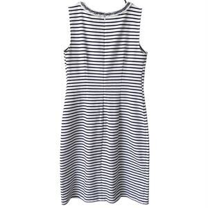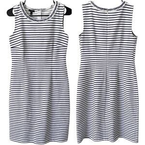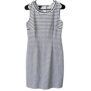 TALBOTS Career Dress Sheath Striped Braided Trim Navy White 4 Professional Chic