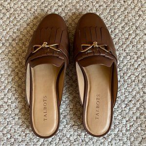 TALBOTS - Cassidy Fringed Mules - Dark Almond -- Excellent Condition