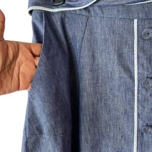 TALBOTS Chambray Blue Linen Blend Midi Skirt Size 14