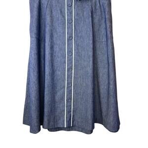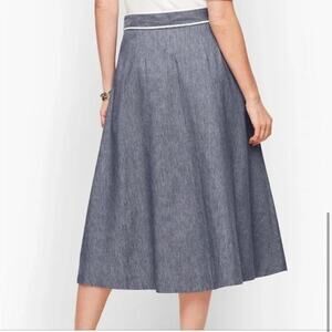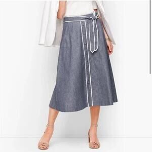 TALBOTS Chambray Blue Linen Blend Midi Skirt Size 14