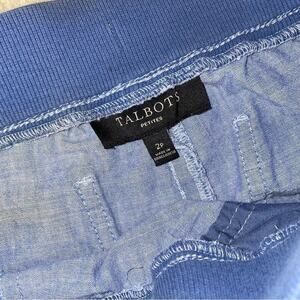 TALBOTS Chambray Pants 100% Linen Lagenlook Elastic waist SZ 2P cropped SZ 2P