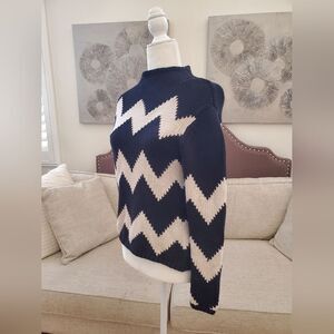 🌹 TALBOTS 🌹 Chunky Knit Mock Neck Chevron Black/White Sweater - [Petite Small]