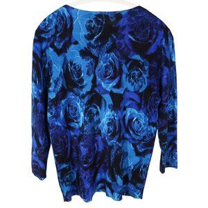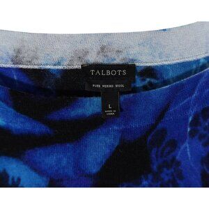TALBOTS Cobalt Blue Rose Print Pure Merino Wool Pullover Sweater Size L Preppy