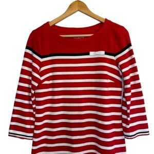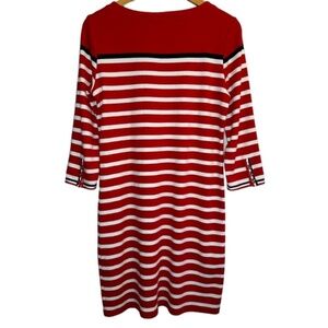 TALBOTS Colorblock Stripe Sweater Dress in Red Boat Neckline 3/4 Sleeve with three buttons detail a tiny bow detail at chest, 100% Cotton Quality Fabric Nautical Holidays