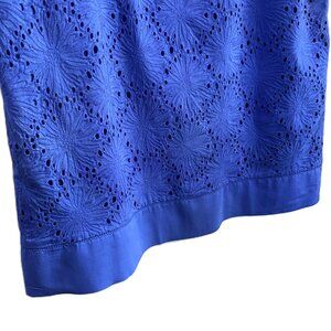 Talbot's Blue Cotton Floral Lace Lined Dress,