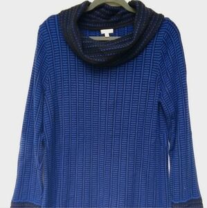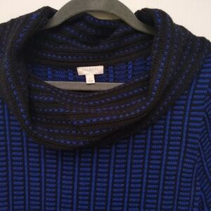 TALBOTS Cowl Neck Blue Black Textured Sweater Women's Medium M Slit Sides