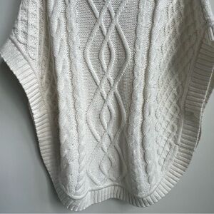 TALBOTS Cream Cable Knit Sweater Poncho Cape w/ Faux Fur Collar NWT Small
