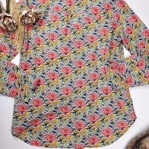 TALBOTS Cream Pink Tan Floral Print Casual Button Down Top Sz M