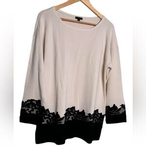 TALBOTS Crewneck Cream & Black Lace Appliqué Top Size Large/P