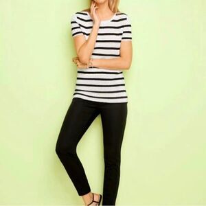 TALBOTS Crochet Black and White Stripe Crewneck Sweater Size XS