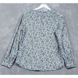 TALBOTS Ditsy Floral Smoked Top Gathered Ruffle Neckline Blouse Blue Green Sz M