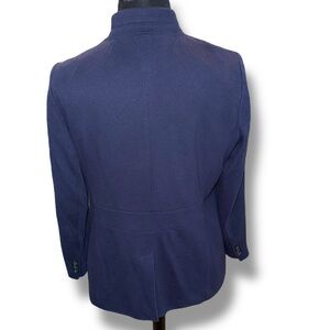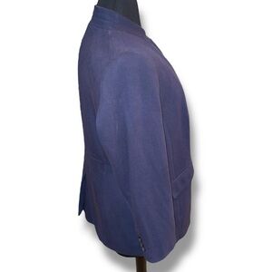 Brand: TALBOTS Style: EASY KNIT BLAZER TWILL Color: Indigo Blue (Navy) Size: Plus 14W Material: 70% Cotton, 30% Nylon; Lining 100% Polyester Care: Dry clean Condition: Preowned, excellent used condition. Dry cleaning tags can be seen in pictures. Please review all photos as part of description and condition. Measurements are approx. as fabric may have some stretch/movement. Measurements are done flat. Chic. Flattering. Beyond comfortable. Sleeve length: Long Hits: At hip Closure: Button Front Flap Pockets Lined Imported