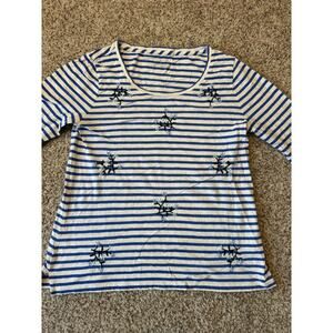 TALBOTS Embroidered floral striped, 3/4 sleeves; size Medium, 100% cotton