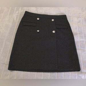 TALBOTS FAUX WRAP BUTTON DETAIL A-LINE SKIRT BLACK SIZE 6P