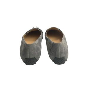 Talbots Suede Tassel Ballet Flat Grey Size 7.5. Leather upper, man made balance. Gray Suede, with light gold metal eyelet and top of tassel. Pointed Toe. Never worn outside house, Excellant condition.