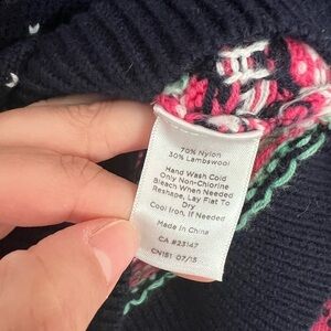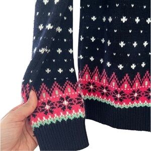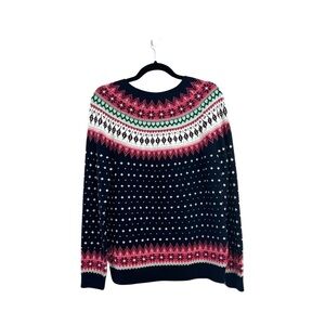 TALBOTS Fair Isle Navy Pink Wool Cardigan Knit Sweater Sz S