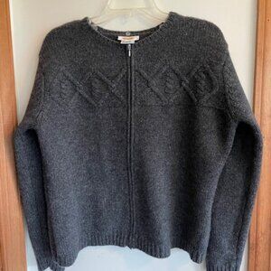 TALBOTS Faux Fur Nordic Lambs Wool Zip Front Removable Collar Cardigan Sweater M