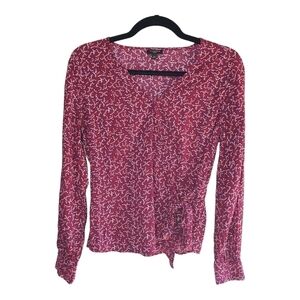 TALBOTS Faux Wrap Shirt Long Sleeve Red Women's Size S/P