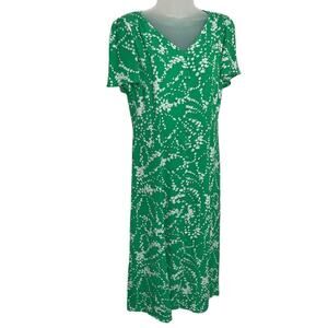 TALBOTS Floral Print Fit & Flare Crepe Dress Size 2 Green and White Sleeves New