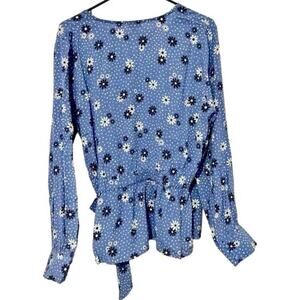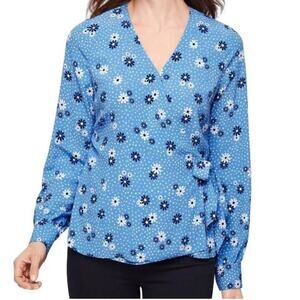 TALBOTS Flowers & Dots Poet Sleeve Wrap Top Size L New with Tag MSRP $89