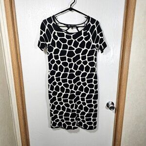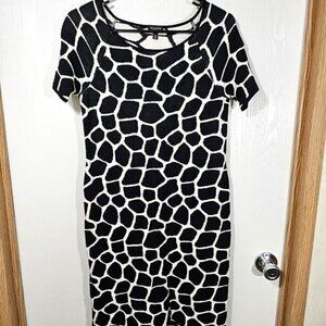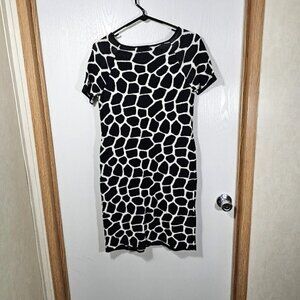 TALBOTS Giraffe Animal Print Sweater Dress BLACK & WHITE size S p Chic Preppy