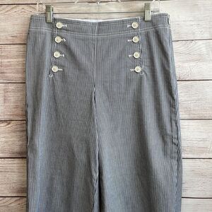 EXCELLENT CONDITION TALBOTS HIGH WAIST DECK PANTS IN NAVY BLUE AND WHITE STRIPES