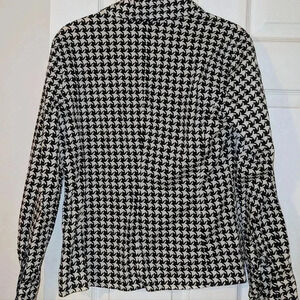 TALBOTS Houndstooth Style Print Faux Wrap Top Blouse Sz 4 Black/White Classic