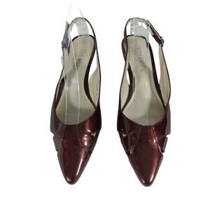 TALBOTS! IRIDESCENT BURGUNDY PATENT LEATHER SLINGBACK KITTEN HEELS! SZ 8B