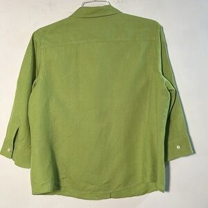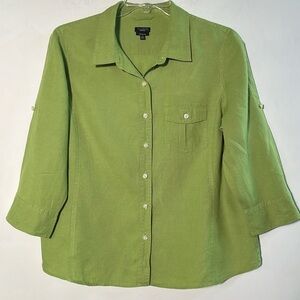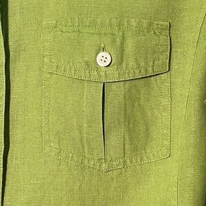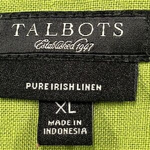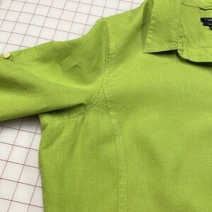 TALBOTS Irish Linen 3/4 or Tab SLV Chest Pocket Button Down Chartreuse Top XL
