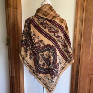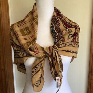 TALBOTS Italian Silk Brown Paisley Plaid Scarf 33" Square