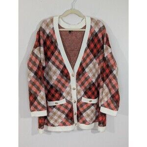 TALBOTS Ivory Brown Orange Argyle Gold Buttons Classic Soft Cardigan Plus SZ 2X